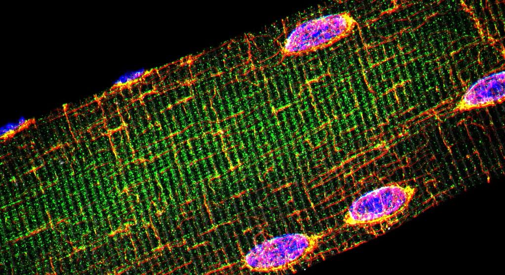 Rare muscular diseases cause the gradual decay of the body but new drug screening could lead to better treatments. Image credit – ‘Isolated Myofiber’ by Doctor William Roman, Instituto de Medicina Molecular