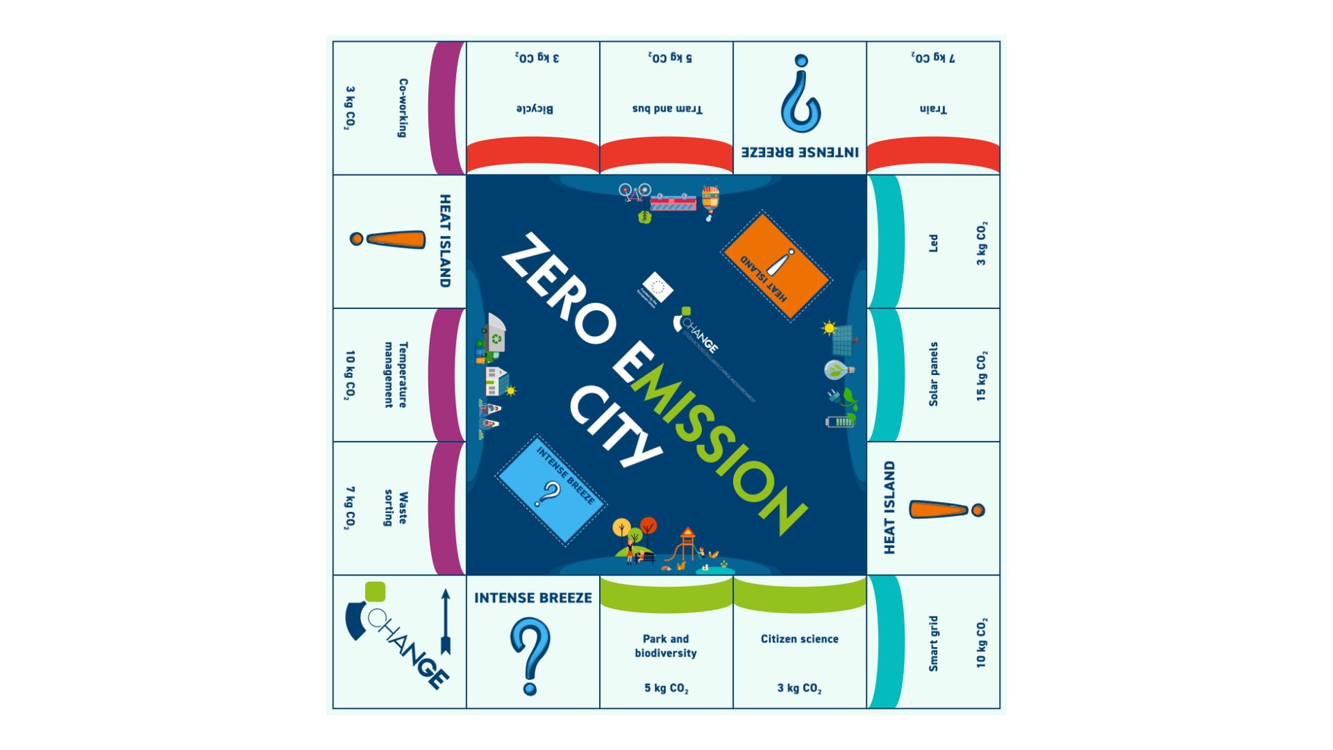 One of the aims of the I-CHANGE project is to involve citizens in science activities and promote their active participation in the issues of climate change, sustainable development and environmental protection. For this reason, it has been developed an educational kit for schools “Zero Emission City” inside which teachers and students can learn about the carbon footprint and the best behaviours to adopt to reduce carbon dioxide production, learning by playing a game. The aim is to carry out actions in a city that wants to become zero emission, by reducing as many kilos of carbon dioxide as possible.