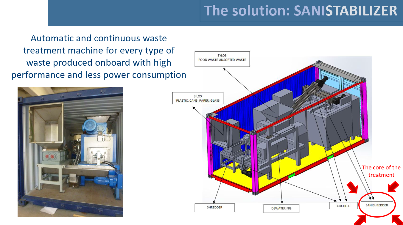 In addition, ships veering off-course for waste delivery purposes add at least extra 2 tons of CO2 per year. Sanistabilizer will remove the need for extra miles for waste delivery, therefore reducing the CO2 footprint of these journeys.