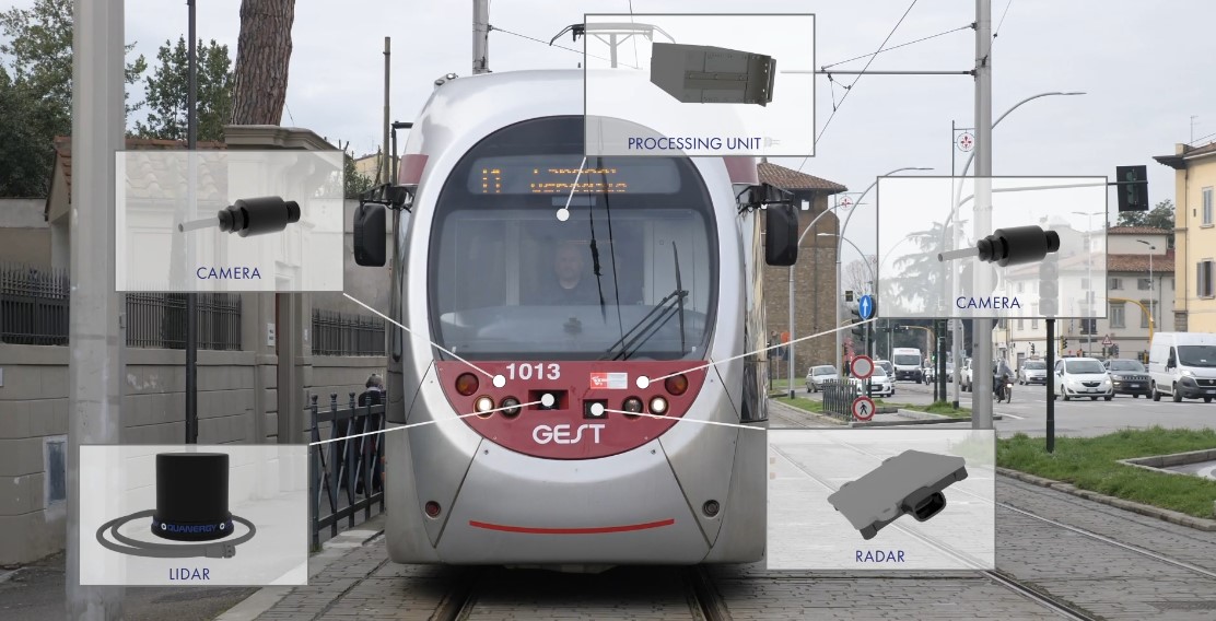 Advanced Driver Assistance System (ADAS) demonstrator implemented and under test into an operating environment. ADAS implements an onboard system to detect and classify tram’s obstacles.
