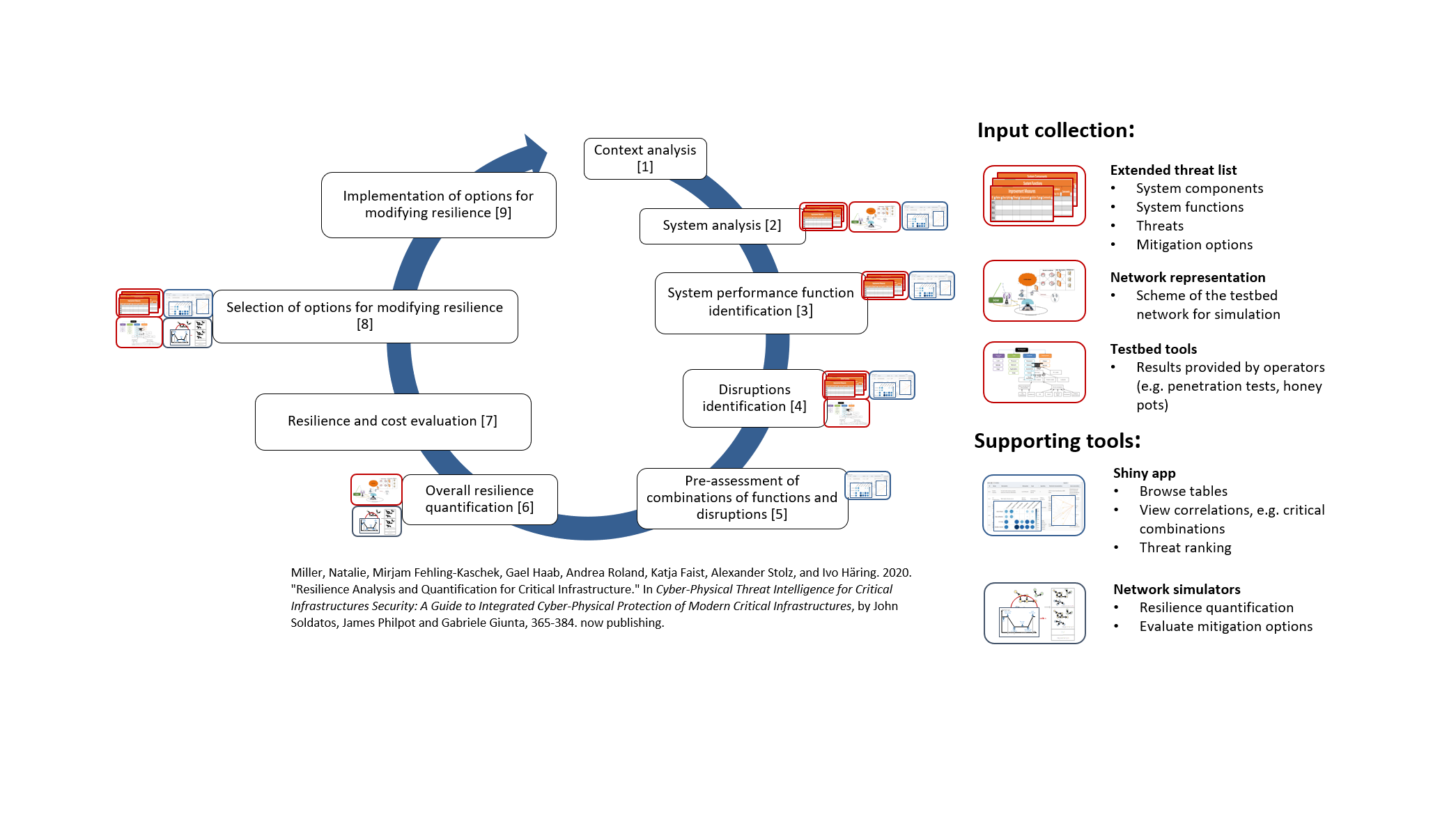 One of the main results of the RESISTO project is the implementation of the resilience management process. This process was implemented for a variety of telecommunication operator testbeds and begins with discussions regarding system components, performance functions, disruptions experienced and potential mitigation options. The data collected during these discussions, plus a network diagram, allows for the critical combinations of threats/disruptions and performance functions to be determined and the overall resilience of the network to be quantified using network simulation. Mitigation actions can be implemented in the simulations with the aim of improving the network resilience. Supporting tools of this process include testbed tools provided by end users such as honey pots, as well as an application that allows for correlation investigation. The main tool for quantifying the resilience is a simulation tool that models networks on a topology and flow level, based on the input from the operators and the network diagram provided. This simulation is an offline analysis and can model different threat types including DDOS attacks, or natural disasters.