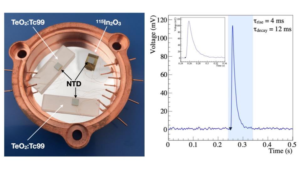 We would deposit ohmic contacts on In2O3 semiconductor crystal to apply an electric field (~100 V), and exploit the Neganov-Trofimov-Luke effect to enhance the thermal signal. Moreover, we are interested in custom optimized superconductive thermal sensors (e.g. TES).