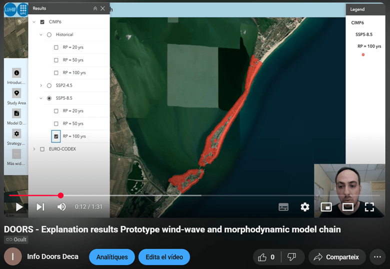 The results are focused on the flooding impacts affecting the Dniestr barrier beach under storm conditions, taking into account both current and projected scenarios driven by future climate change. Through these comprehensive simulations, we are able to clearly identify the most vulnerable sectors of the barrier beach, particularly areas that are densely populated and therefore face an escalating risk of severe flooding and associated damages. These findings provide valuable information that can assist policymakers, local stakeholders, and emergency management authorities in prioritizing intervention measures, implementing effective mitigation strategies, and planning long-term adaptation actions aimed at minimizing potential future consequences. To facilitate understanding and enhance accessibility, the results have been integrated into a user-friendly webvisor platform. This visualization tool allows users to explore the simulated scenarios interactively, providing clear, intuitive, and visually engaging representations of the projected flooding effects, thereby supporting informed decision-making processes.