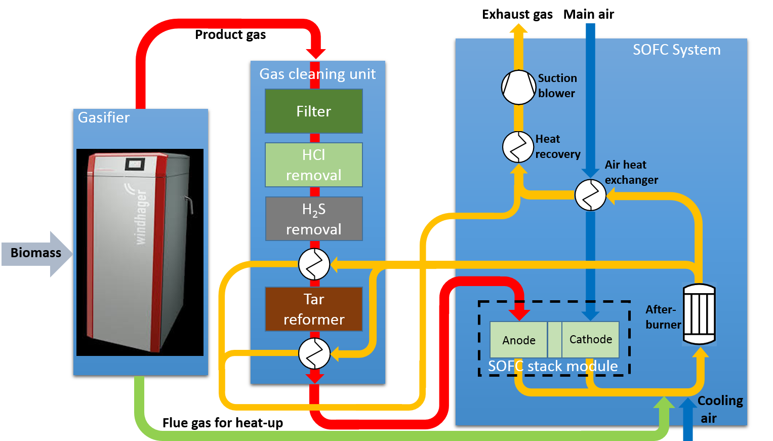 For the first time a micro-CHP technology with close to zero emissions, high electric (more than 40% efficiency regarding the conversion of the product gas heating value into electricity) and overall efficiency (90% according to the final system design) was realised. The wide range of solid biomass fuels applicable shall result in a positive impact regarding energy security in the EU.